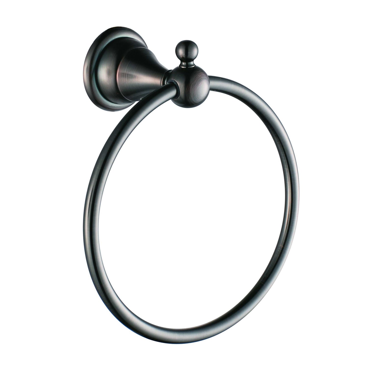Elegantní držák na ručník ve tvaru kruhu, vyrobený z masivní mosazi v tmavé povrchové úpravě.