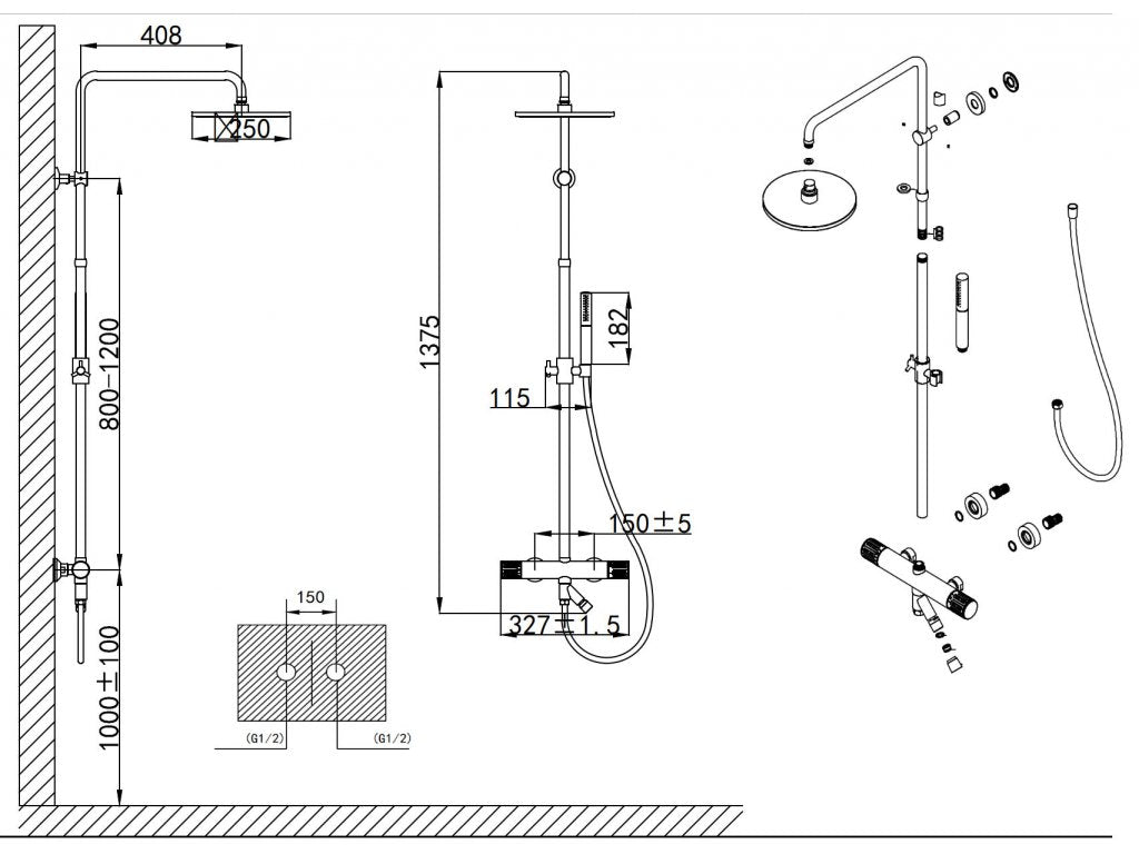 Kohoutem na levé straně se sprcha spouští a přepíná mezi hlavovou a ruční sprchou.