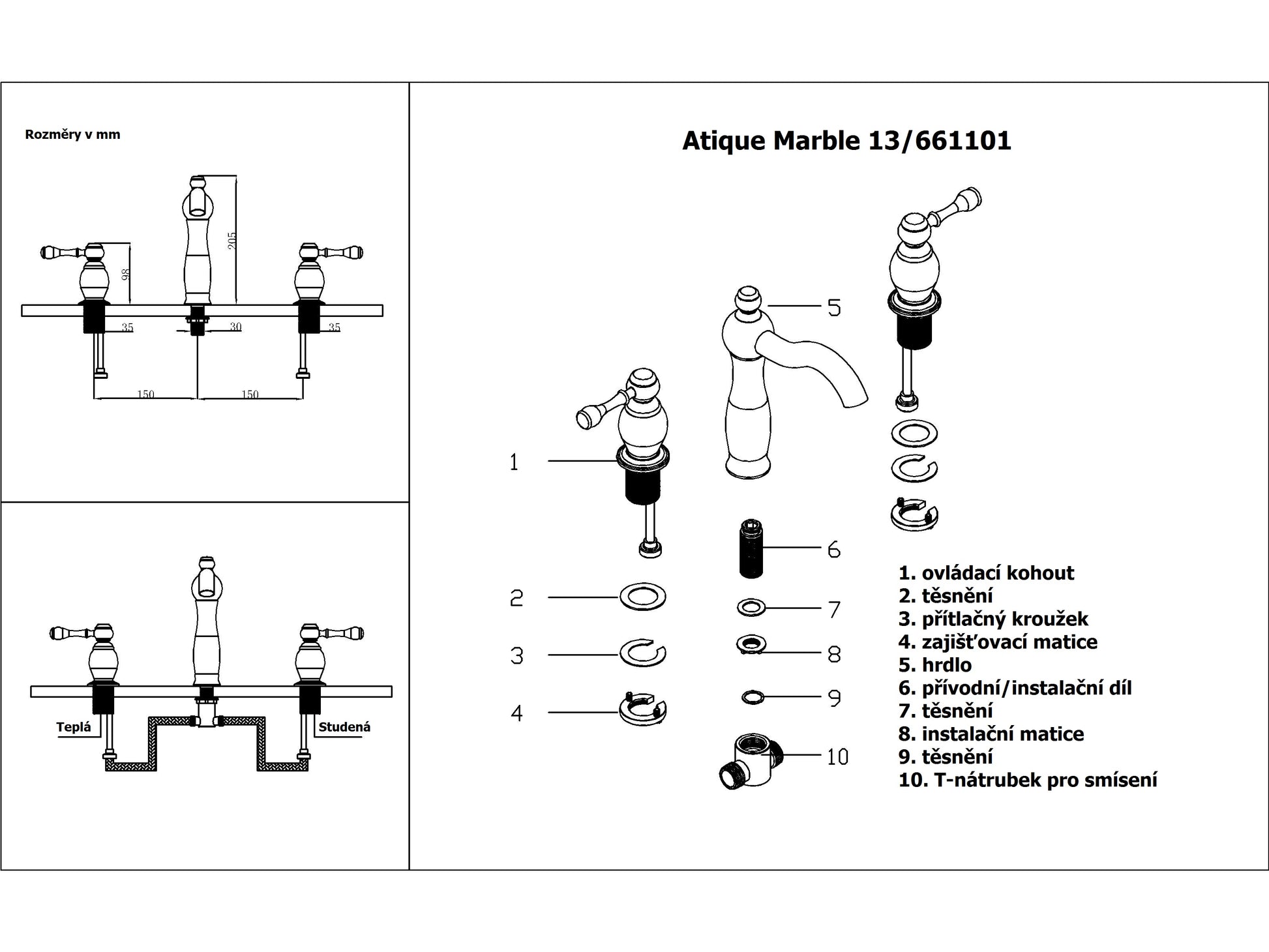 Zahrnuty jsou flexibilní hadice a všechny montážní prvky