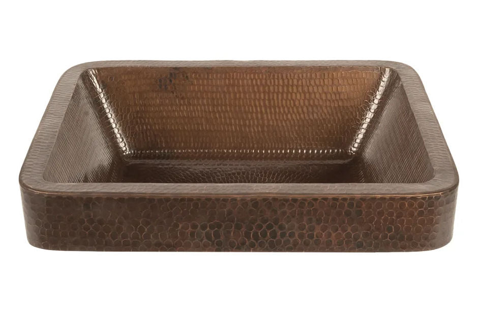 Měděné obdélníkové umyvadlo na desku - polozápustné